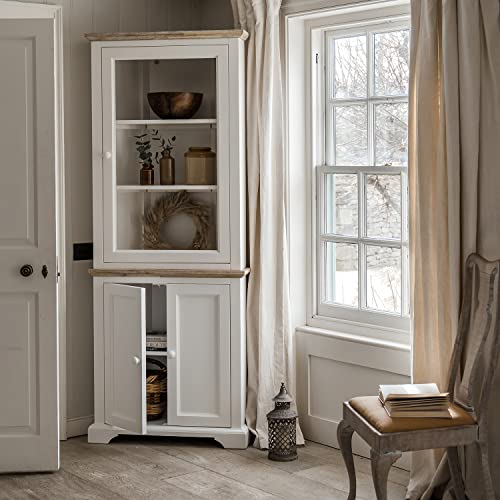 For a more homely, period feel, look for a traditional glazed cabinet. The Halifax white storage cabinet, shown above, has a dresser-like look and works equally well in a dining room for books and chinaware, as it does in a bedroom, where colourful neatly stacked sweaters can be piled up behind its glass doors.