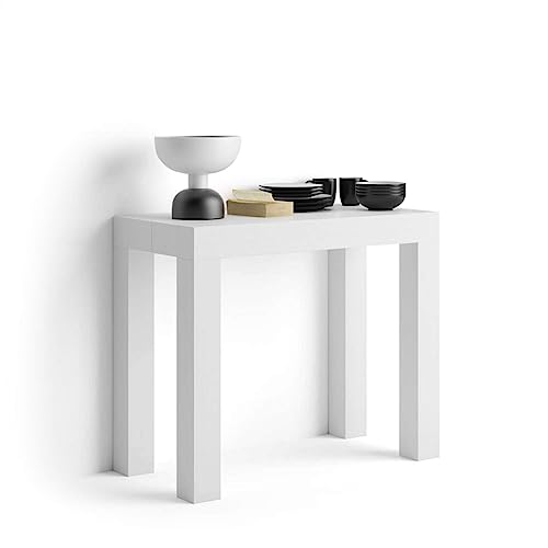 This Mobili Fiver Extendable Console Table, shown above from Amazon, can sit neatly against a wall for use as a desk or console table. But, when needed, its legs can then be telescoped out so that several more leaves can be added growing to 253cm deep, comfortably seating ten or more. There are different sizes in between too, for more intimate gatherings. 2. The Collodi White Ceramic Extending 8 to 10 Seater Dining Table