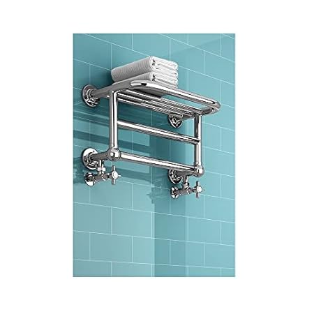 Choose a radiator that doubles up as a heated towel rail, so that it dries and stores your towels too. Select one with a built-in shelf, such as the Aquaworld heated towel rail and shelf, as shown above, and you can store fresh towels on it too.
